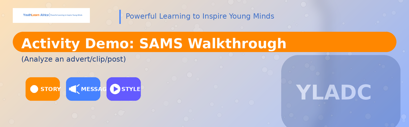 In this activity, you will watch 3 short media examples created by young people and learn how to analyze them using SAMS (Story, Audience, Message, Style)—then you’ll practice on your own.